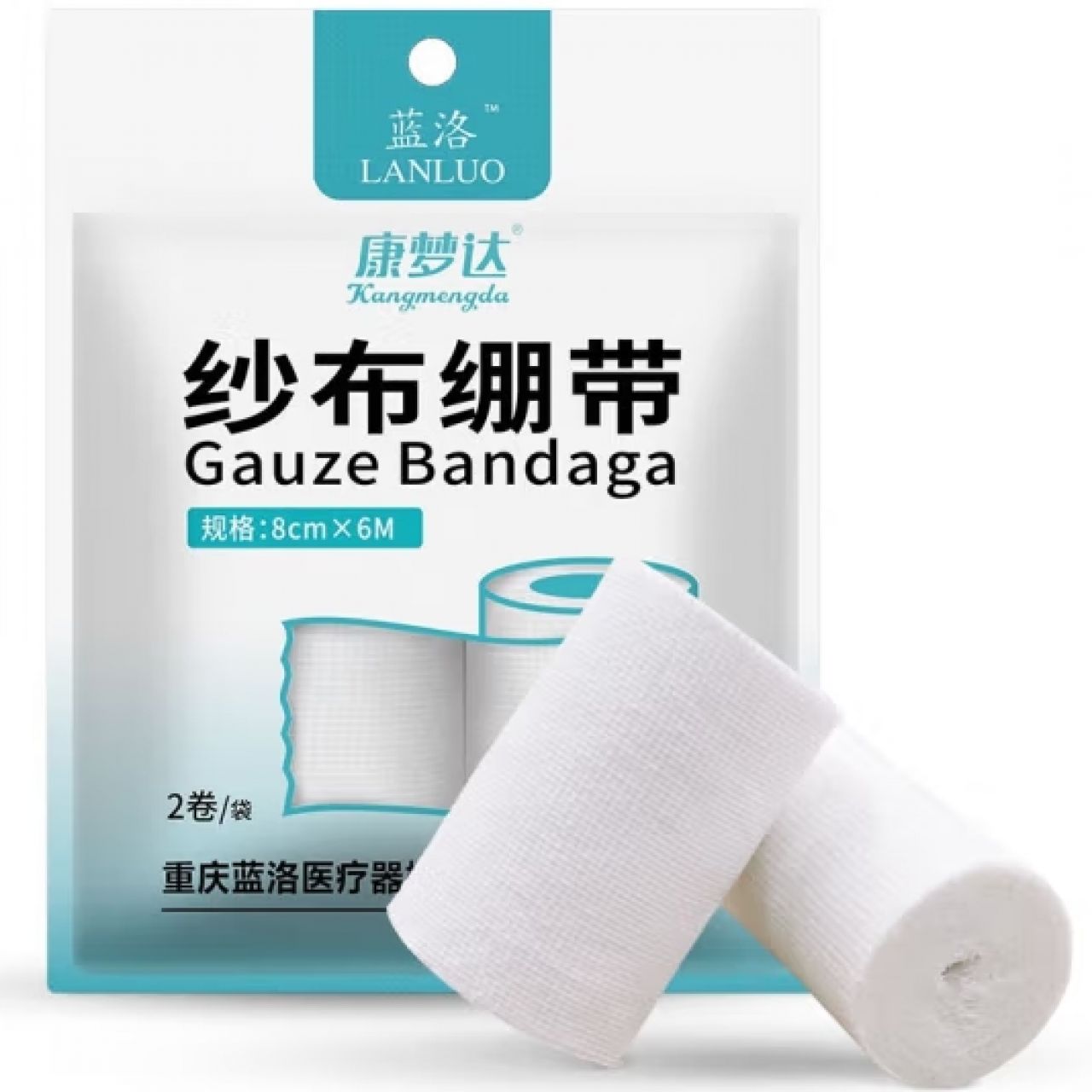 蓝洛 医用纱布绷带8cm*6米*2卷 一次性脱脂棉纱布卷