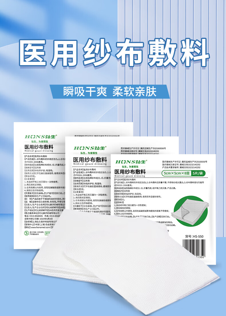 一次性脱脂棉纱布叠片包扎护理5cm*5cm5片/袋