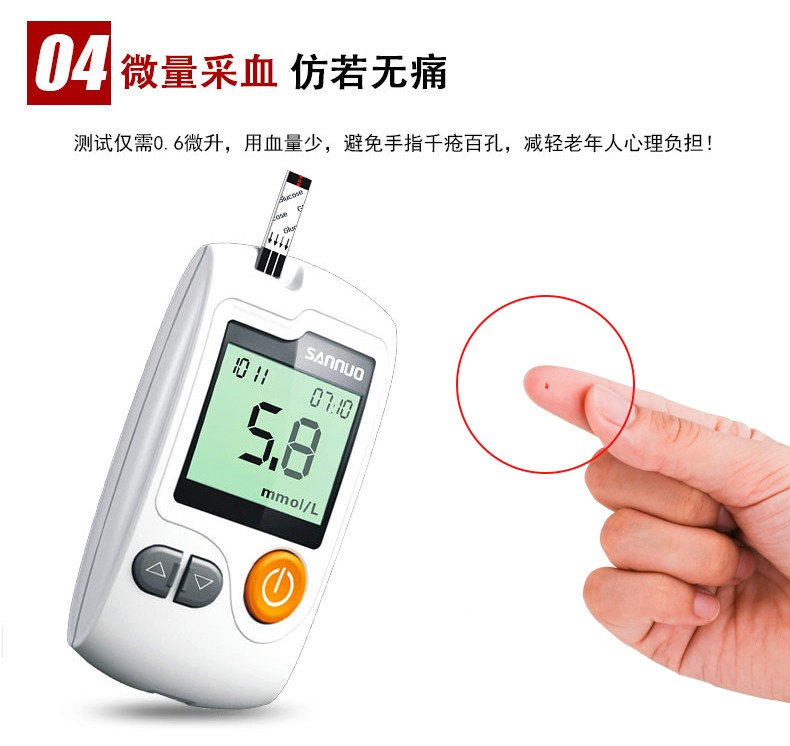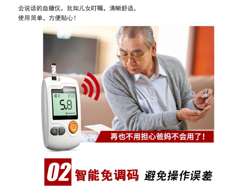 三诺GA-3型血糖试纸条家用糖尿病测试仪器试纸免调码 血糖仪+50片试纸+50针头+50消毒棉片