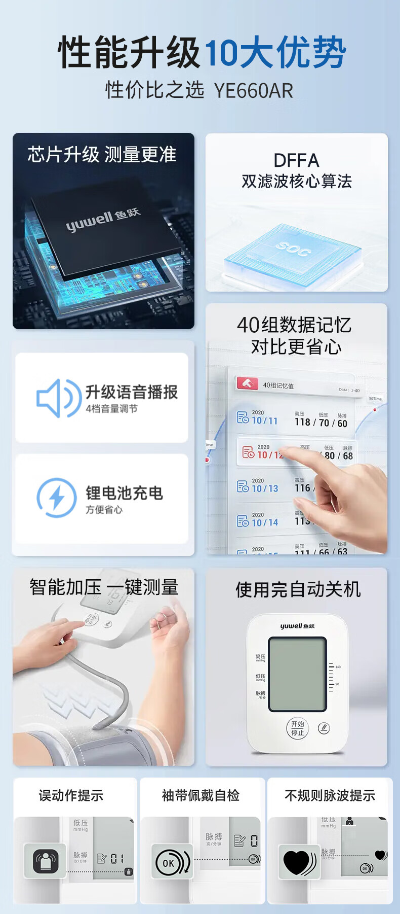 鱼跃 臂式电子血压计 医用测血压测量仪经典大屏 YE660A