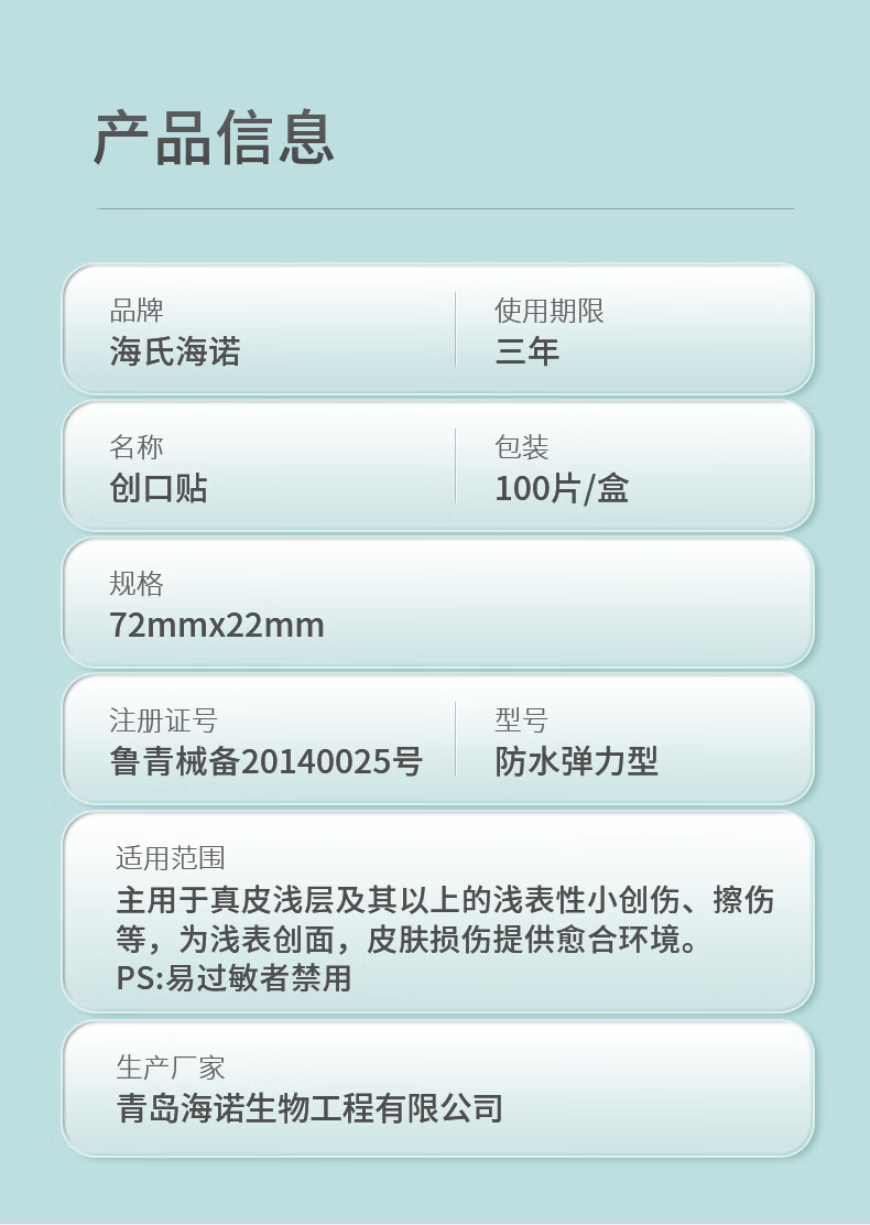 首页> 家庭常备> 创口贴> 海氏海诺 创可贴防水透气医用创口贴止血贴防磨脚弹力创口贴100片