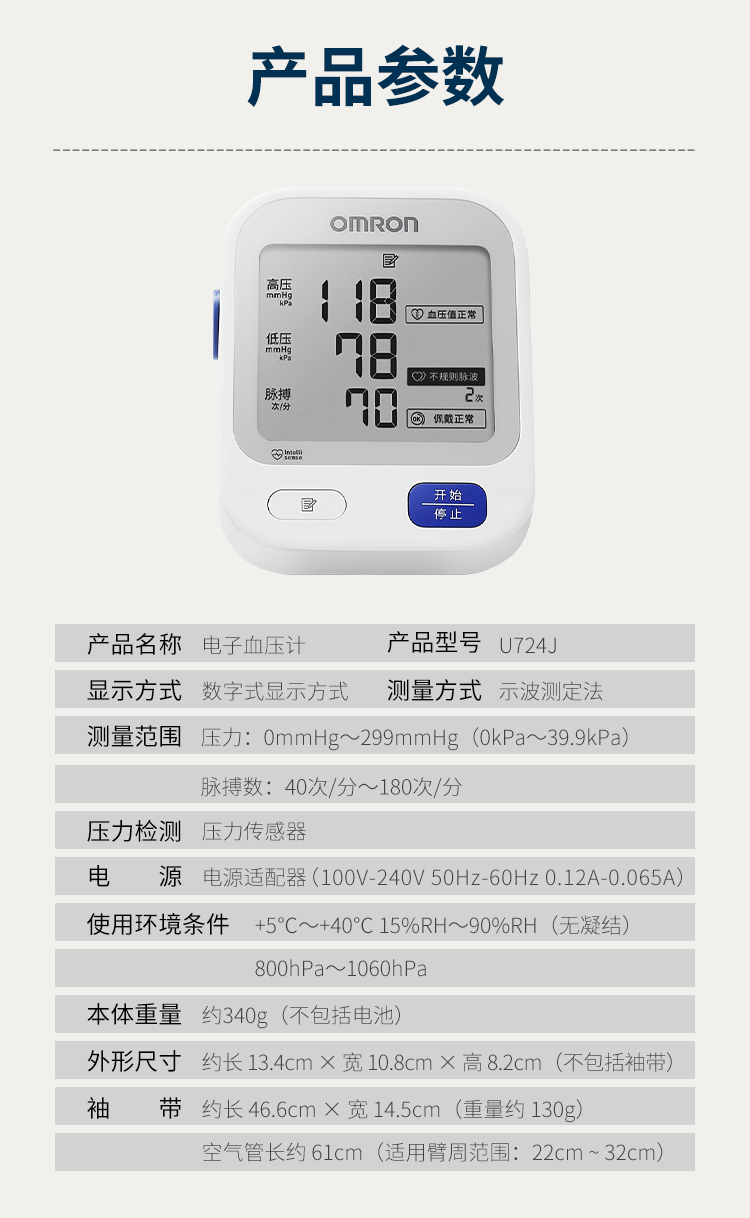 欧姆龙(OMRON)电子血压计血压仪家用血压测量仪医用高精准U724J